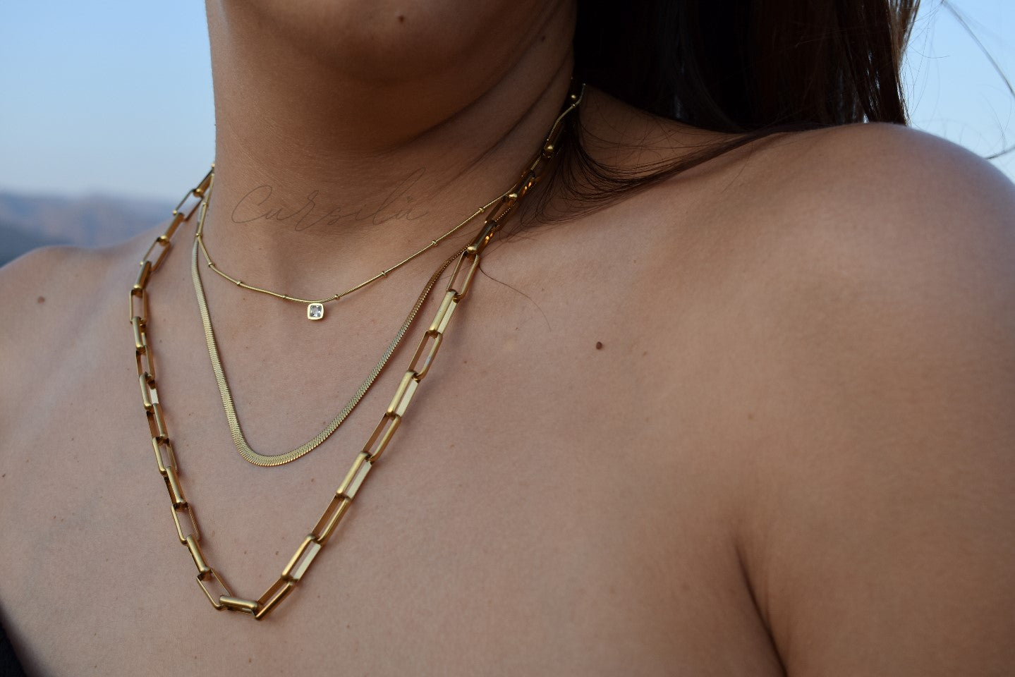 El collar diamante es ideal gracias a su diseño minimalista. Porque menos es más siempre. No pesa nada.